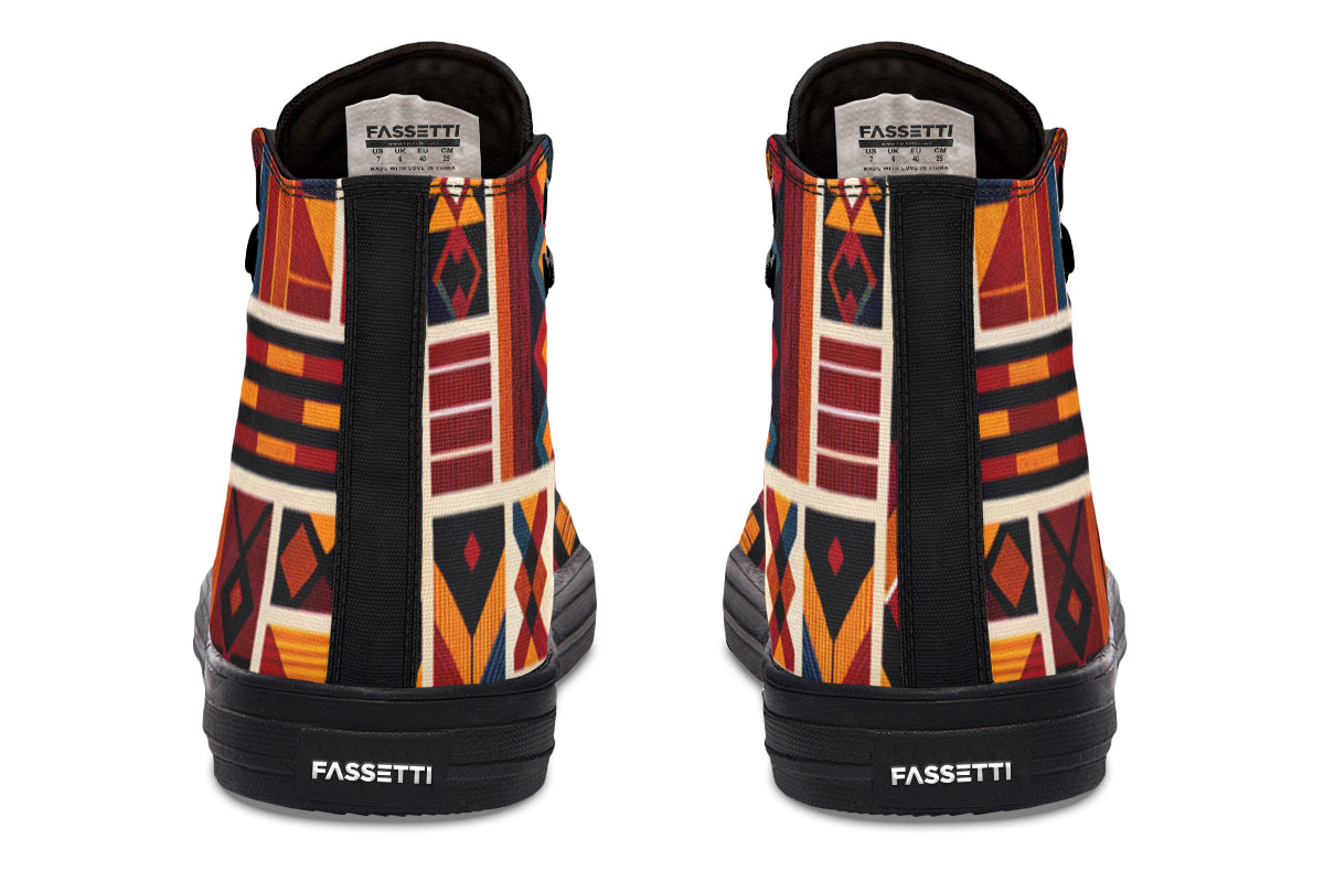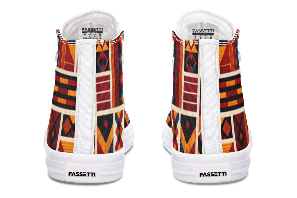 Step up your style with our Fassetti High Tops, designed to be true to size and perfect for wider feet. These high tops feature a removable insole for added convenience and are crafted from top-quality materials, including durable canvas fabric and a sturdy rubber outsole. With vibrant colors and exceptional print quality, each pair is custom made just for you, ensuring you stand out with every step. Elevate your look with high tops that blend fashion, comfort, and a personalized touch.