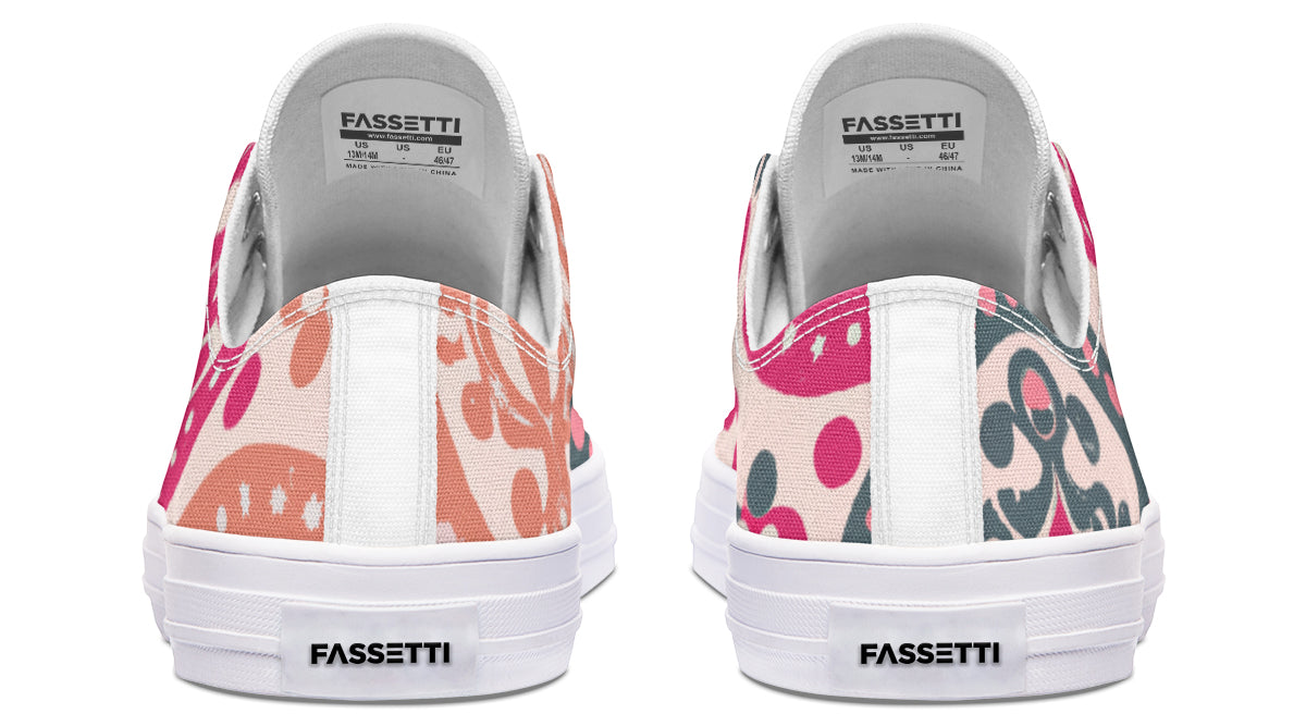 Elevate your everyday look with Fassetti Low Tops, crafted to be true to size and accommodating for wider feet. These low tops feature a removable insole for personalized comfort and are made from top-quality materials, including durable canvas fabric and a reliable rubber outsole. With stunning colors and high-quality prints, each pair is custom made just for you. Perfect for any occasion, our low tops blend style, comfort, and a unique touch that sets you apart.
