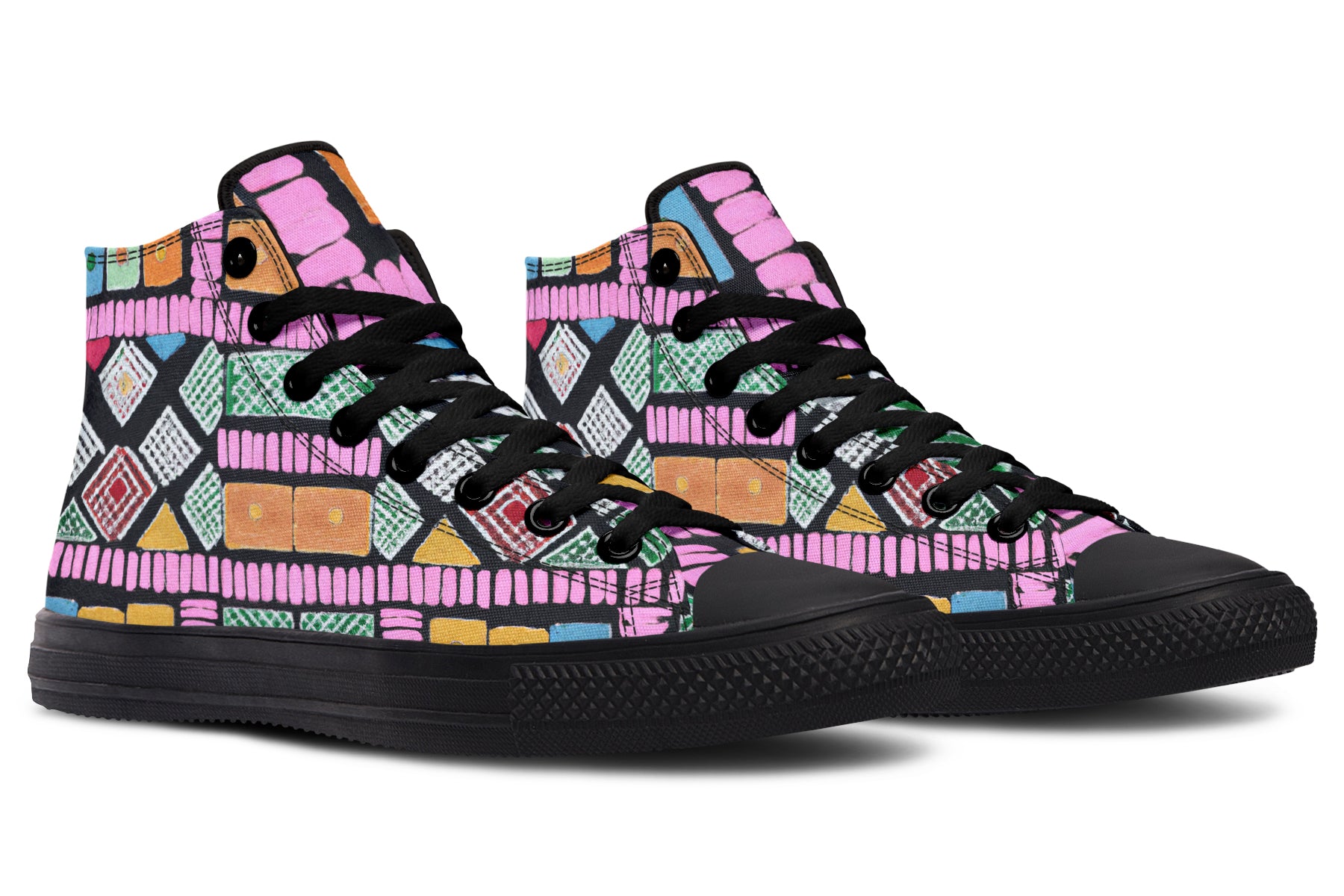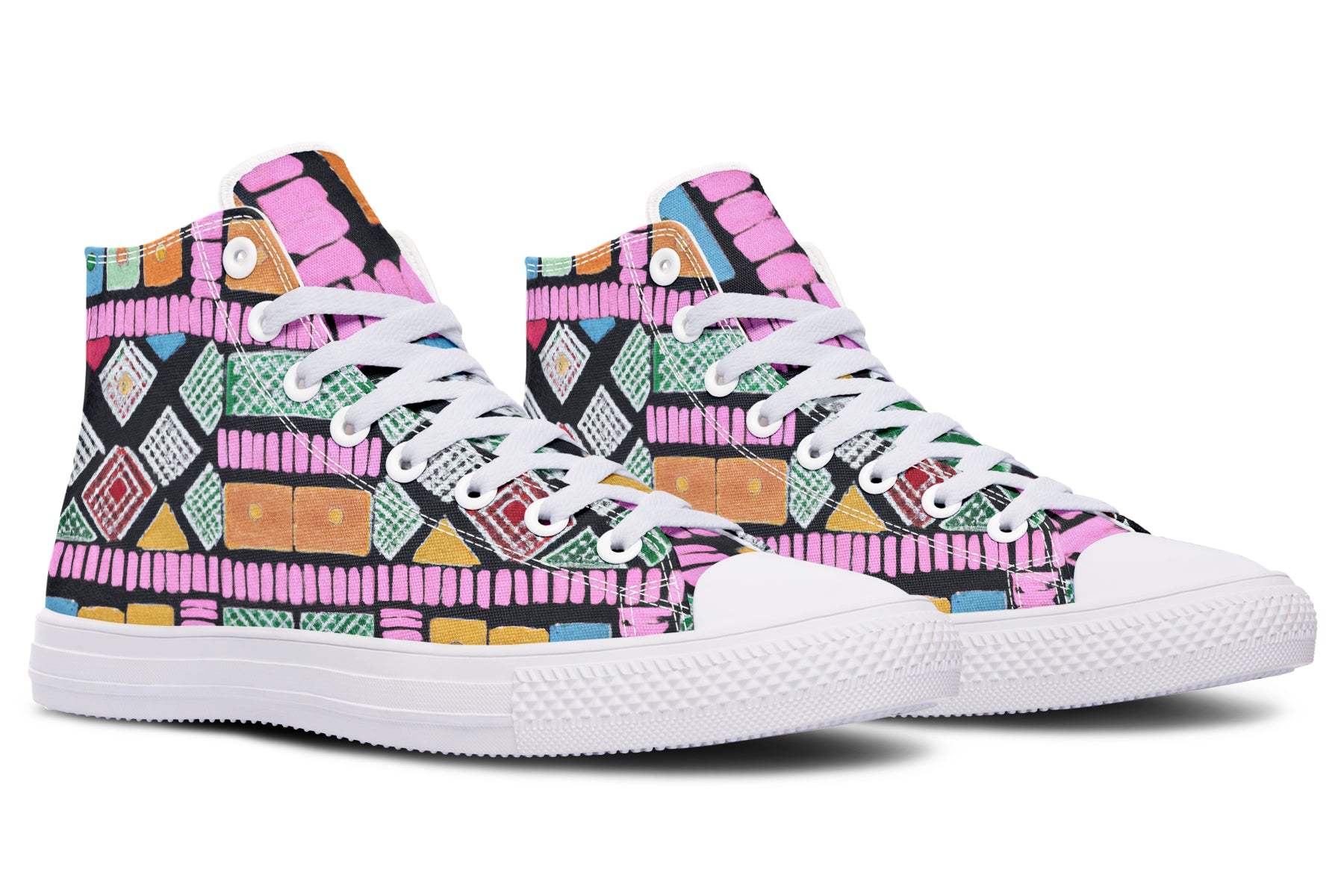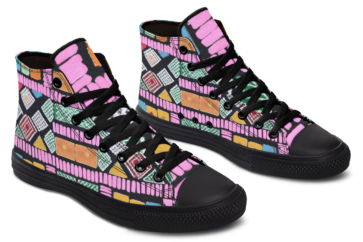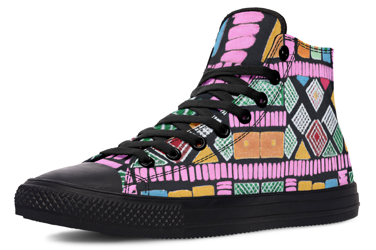 Step up your style with our Fassetti High Tops, designed to be true to size and perfect for wider feet. These high tops feature a removable insole for added convenience and are crafted from top-quality materials, including durable canvas fabric and a sturdy rubber outsole. With vibrant colors and exceptional print quality, each pair is custom made just for you, ensuring you stand out with every step. Elevate your look with high tops that blend fashion, comfort, and a personalized touch.