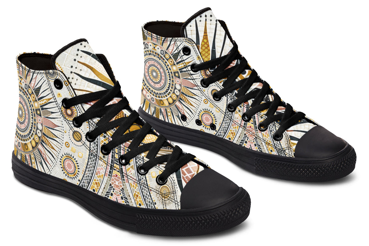 Step up your style with our Fassetti High Tops, designed to be true to size and perfect for wider feet. These high tops feature a removable insole for added convenience and are crafted from top-quality materials, including durable canvas fabric and a sturdy rubber outsole. With vibrant colors and exceptional print quality, each pair is custom made just for you, ensuring you stand out with every step. Elevate your look with high tops that blend fashion, comfort, and a personalized touch.