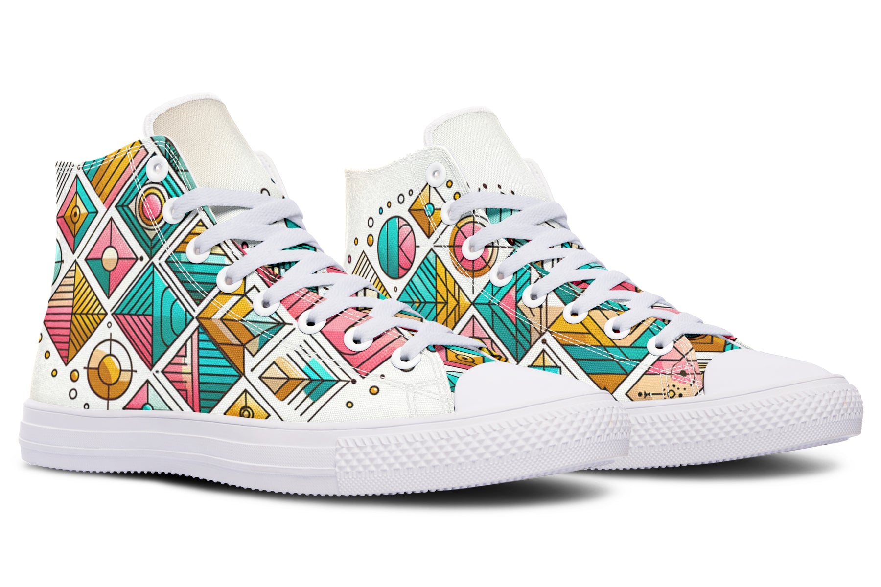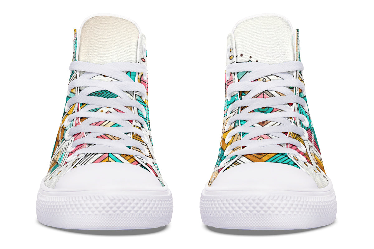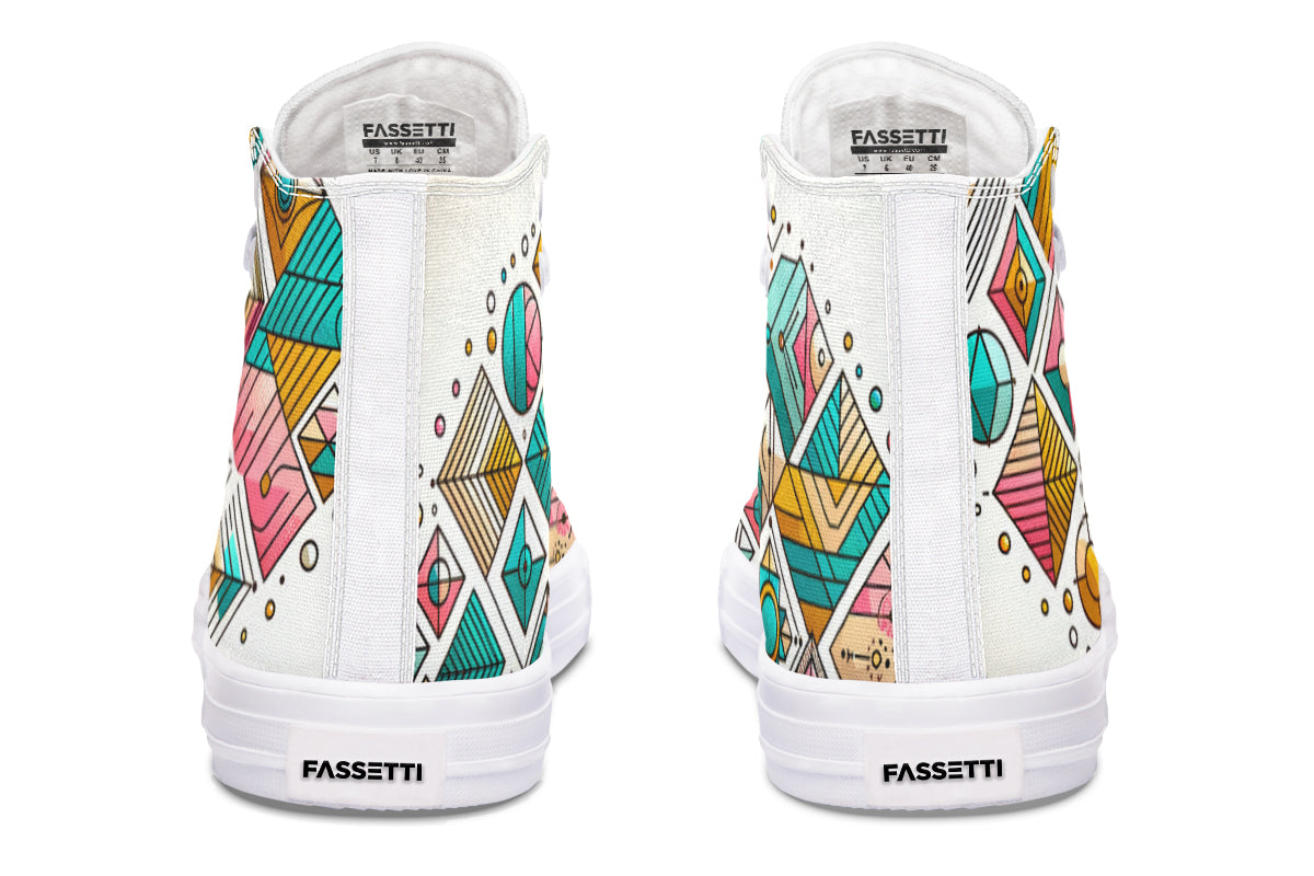 Step up your style with our Fassetti High Tops, designed to be true to size and perfect for wider feet. These high tops feature a removable insole for added convenience and are crafted from top-quality materials, including durable canvas fabric and a sturdy rubber outsole. With vibrant colors and exceptional print quality, each pair is custom made just for you, ensuring you stand out with every step. Elevate your look with high tops that blend fashion, comfort, and a personalized touch.