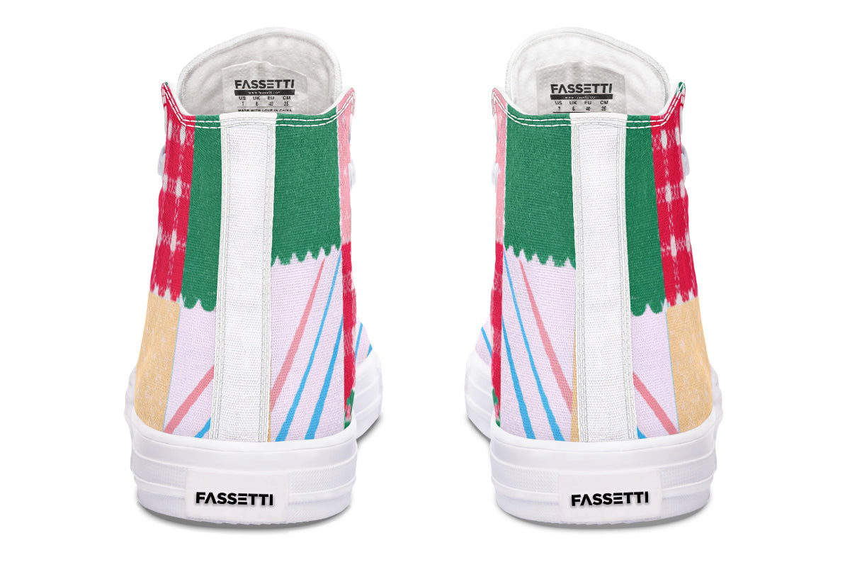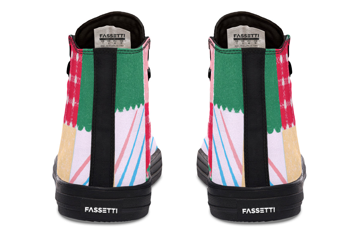Step up your style with our Fassetti High Tops, designed to be true to size and perfect for wider feet. These high tops feature a removable insole for added convenience and are crafted from top-quality materials, including durable canvas fabric and a sturdy rubber outsole. With vibrant colors and exceptional print quality, each pair is custom made just for you, ensuring you stand out with every step. Elevate your look with high tops that blend fashion, comfort, and a personalized touch.
