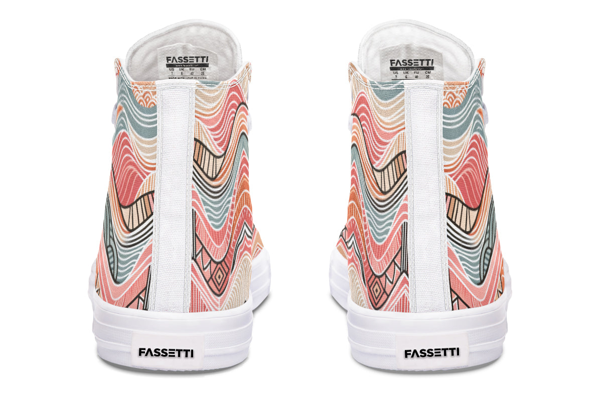Step up your style with our Fassetti High Tops, designed to be true to size and perfect for wider feet. These high tops feature a removable insole for added convenience and are crafted from top-quality materials, including durable canvas fabric and a sturdy rubber outsole. With vibrant colors and exceptional print quality, each pair is custom made just for you, ensuring you stand out with every step. Elevate your look with high tops that blend fashion, comfort, and a personalized touch.