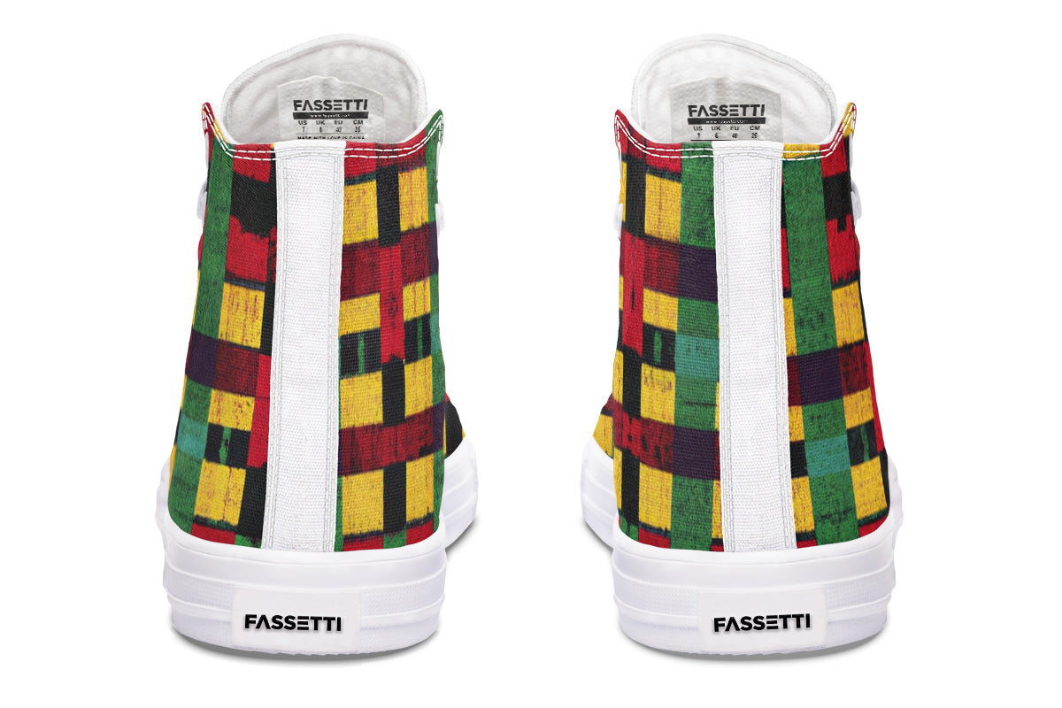 Step up your style with our Fassetti High Tops, designed to be true to size and perfect for wider feet. These high tops feature a removable insole for added convenience and are crafted from top-quality materials, including durable canvas fabric and a sturdy rubber outsole. With vibrant colors and exceptional print quality, each pair is custom made just for you, ensuring you stand out with every step. Elevate your look with high tops that blend fashion, comfort, and a personalized touch.