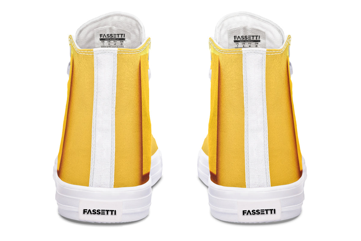 Step up your style with our Fassetti High Tops, designed to be true to size and perfect for wider feet. These high tops feature a removable insole for added convenience and are crafted from top-quality materials, including durable canvas fabric and a sturdy rubber outsole. With vibrant colors and exceptional print quality, each pair is custom made just for you, ensuring you stand out with every step. Elevate your look with high tops that blend fashion, comfort, and a personalized touch.